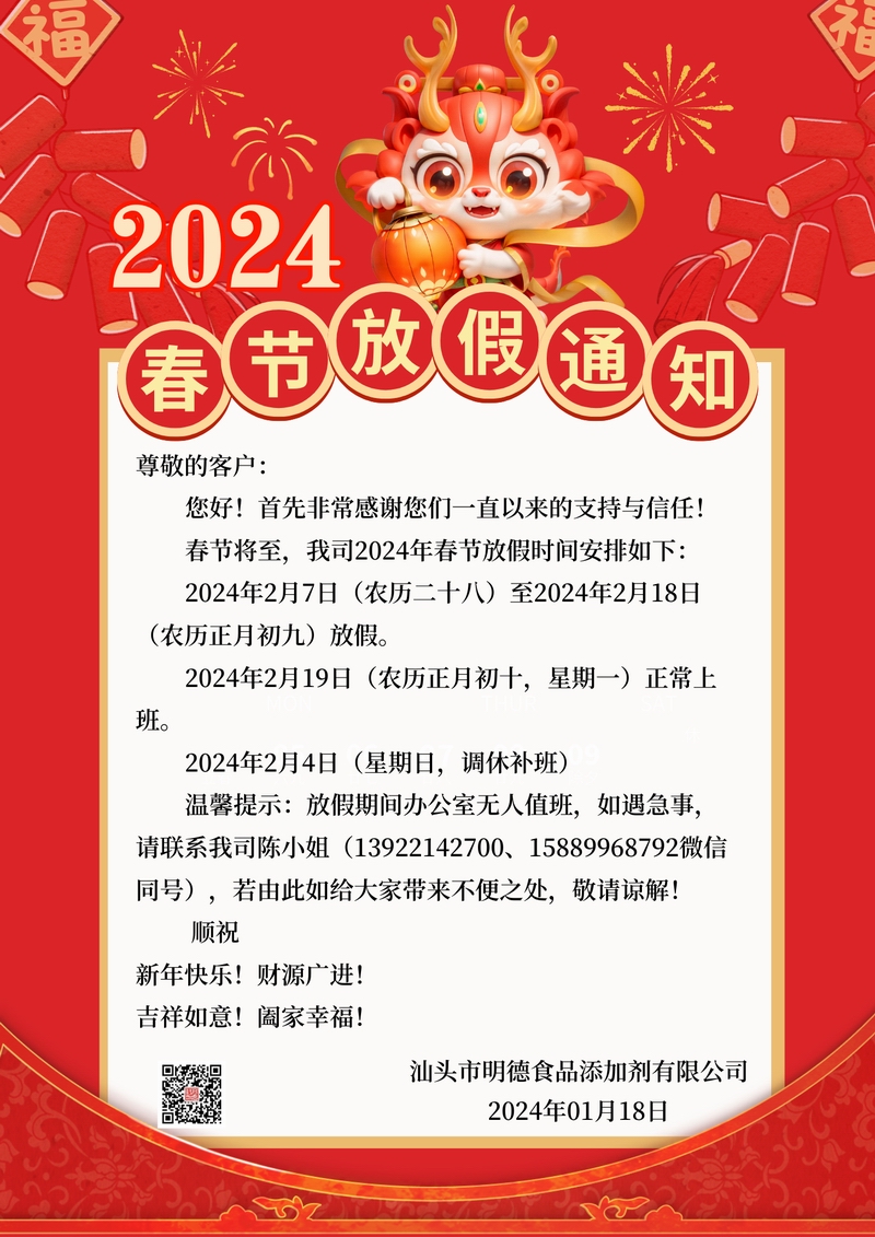 春節(jié)放假通知,敬請留意!