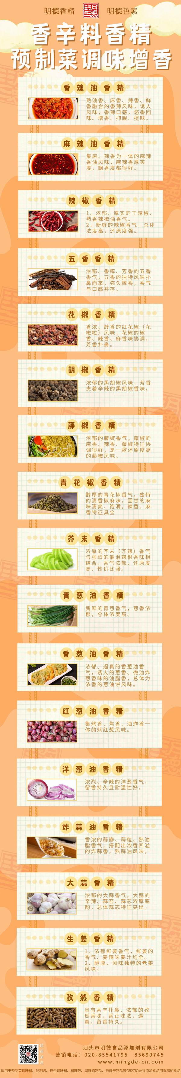 此外 明德食品添加劑 還研發(fā)了眾多香辛料風(fēng)味類香精,如小蔥、青蔥、炸蔥,如藤椒、花椒、麻椒等等,近10年來(lái)在復(fù)合調(diào)味料、腌料、醬料、火鍋底料多有應(yīng)用,頗受好評(píng)。諸如此類,各有特色。歡迎有興趣的廠家朋友們咨詢聯(lián)系!-